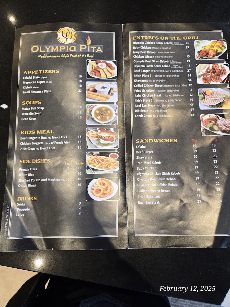 Welcome to Olympia Pita, your new go-to destination in Pomona for delectable Mediterranean cuisine. Nestled at 1581 US-202, this restaurant offers a warm ambiance, merging elegant and cozy elements perfect for any occasion. Diners rave about the attentive service, with staff members like manager Nissim creating a welcoming atmosphere that feels like home.
